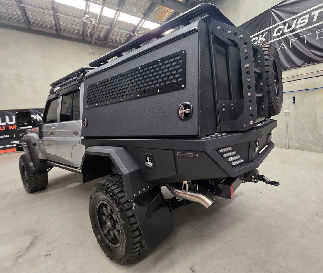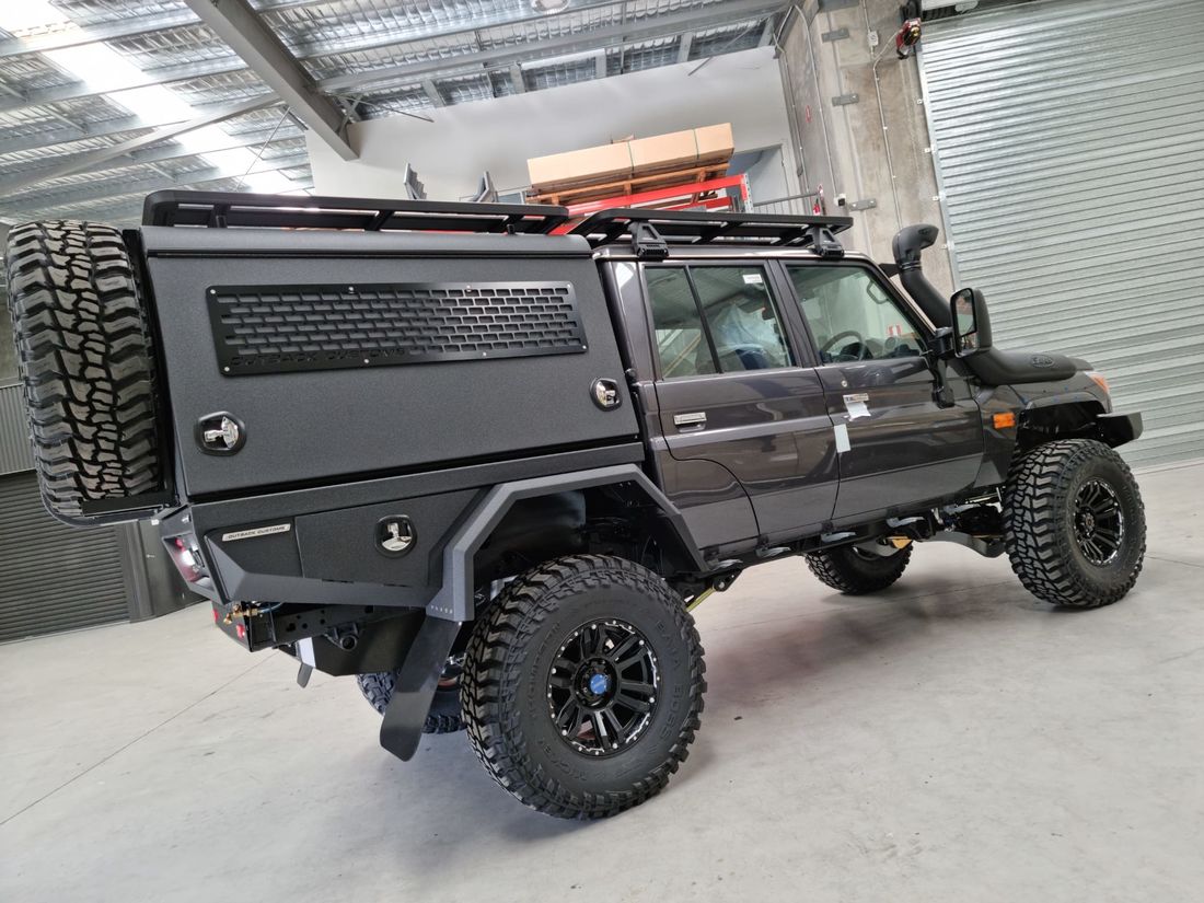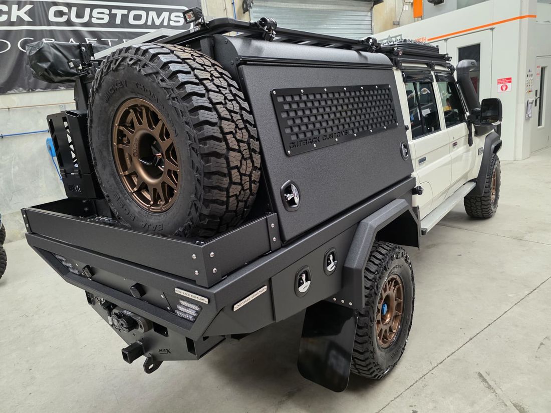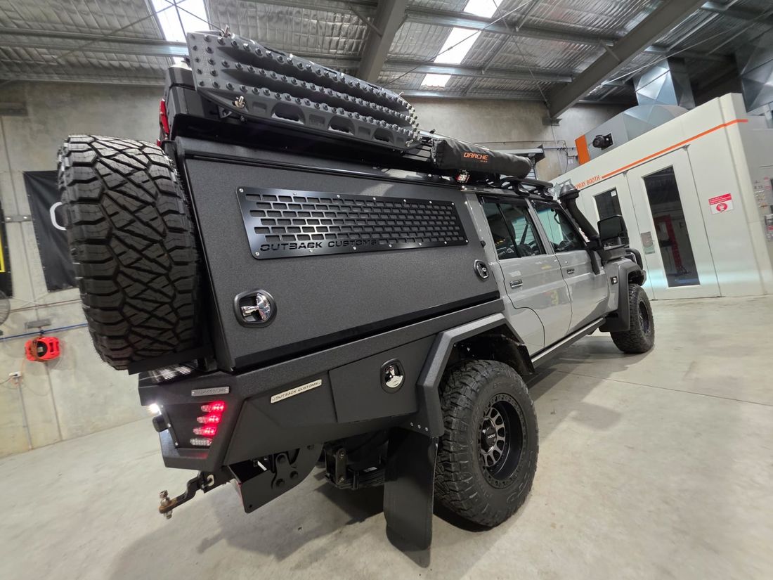 19 YEARS OF CRAFTING THE ULTIMATE TOURERWith 19 years of experience, Outback Customs has spent almost two decades perfecting hand-built Trays & Canopies, earning a reputation for unmatched quality, precision, and craftsmanship in the industry. Our custom Tray and Canopy packages are expertly tailored to suit the Toyota LandCruiser 79 Series V8 as well as the Toyota LandCruiser 2.8 Litre Automatic GDJ-FTV 4 Cylinder 79 Series vehicles. We offer full build management to oversee every aspect of your project allowing us to share in delivering the ultimate tourer designed for your adventure. To compliment our custom Tray and Canopy packages, we offer Tough Dog GVM and suspension upgrades, complete VICTRON 12 volt & 240 volt power systems, The Bush Company roof top tents and all major 4x4 accessories, ensuring every build can be fully customized for the ultimate touring experience.